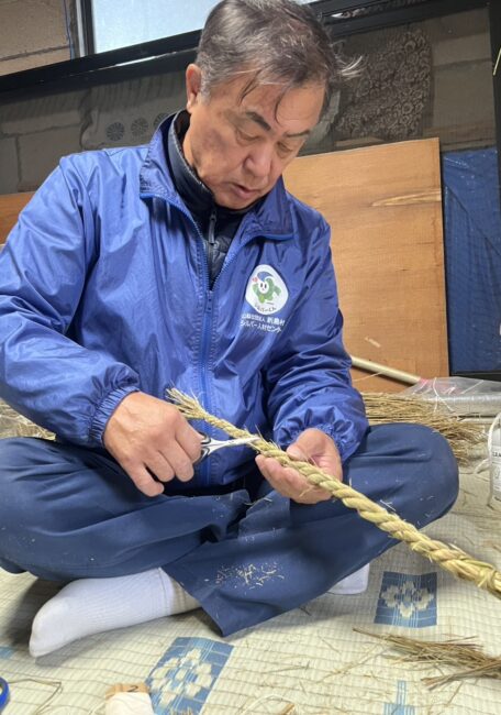 完成した飾りを引き渡すのは12月下旬頃ですが、藁を綯う作業は10月頃から始まるので