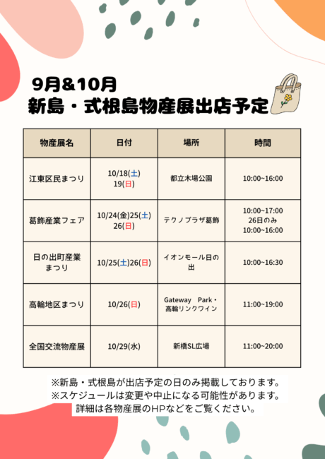 ※新島・式根島ブースが出店予定の日のみ掲載しております。